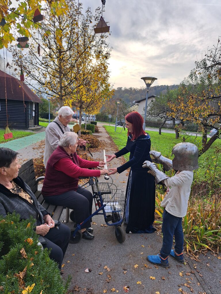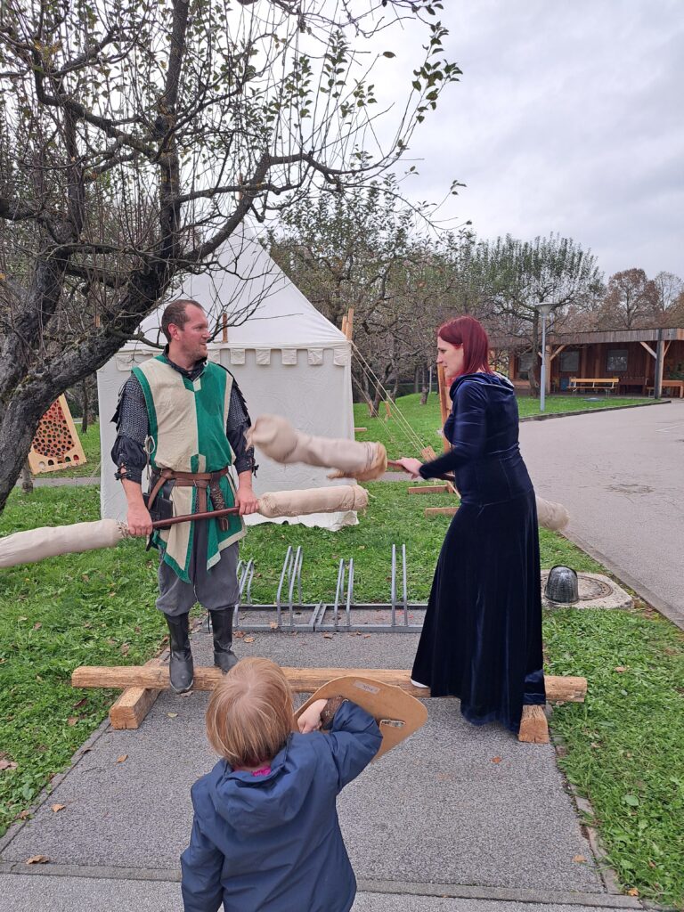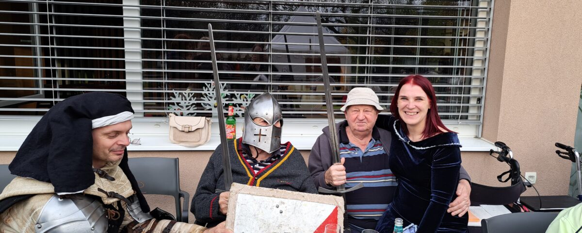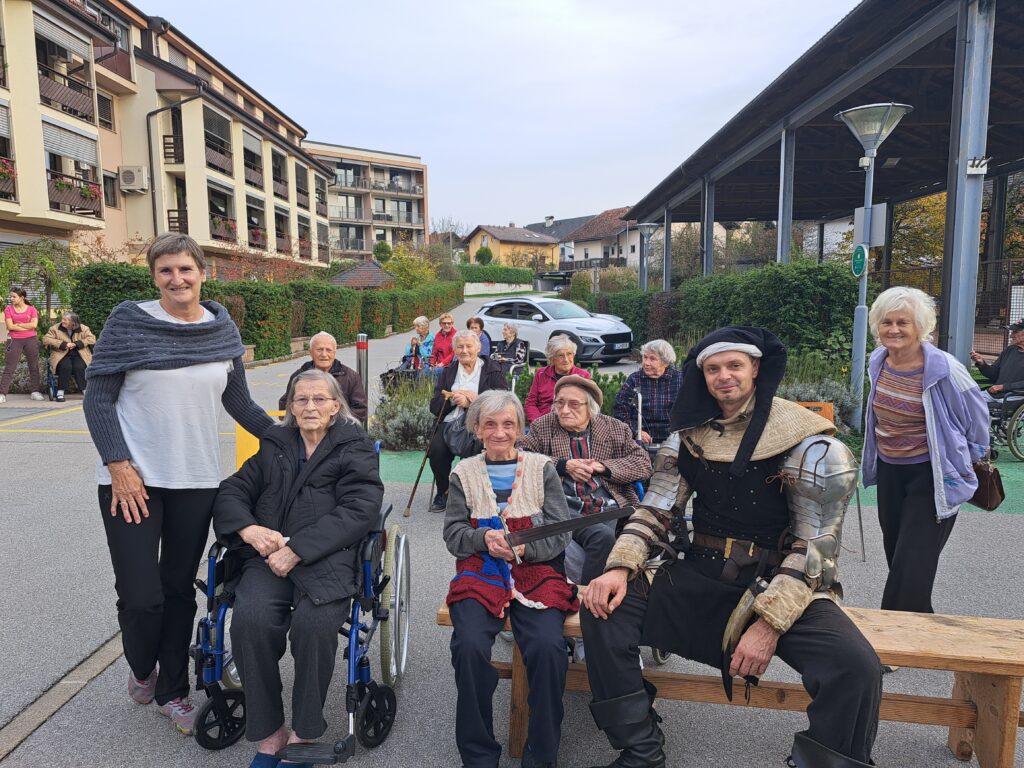 Na ponedeljkovo popoldne smo čas zavrteli nazaj in si ogledali življenje v srednjem veku. Med nas je namreč prišlo Društvo srednjeveški najemniki. Predstavili so nam svoje življenje in nas nagovorili celo v svojem prastarem suhokranjskem narečju. Stanovalci so z navdušenjem pospremili bojevanje z meči, se preizkusili v igri, občudovali oblačila, najpogumnejši pa si nadeli viteško opremo. Ob lepem sprejemu stanovalcev je le še vprašanja časa, kdaj nas obišče sam žužemberški graščak s svojim spremstvom.