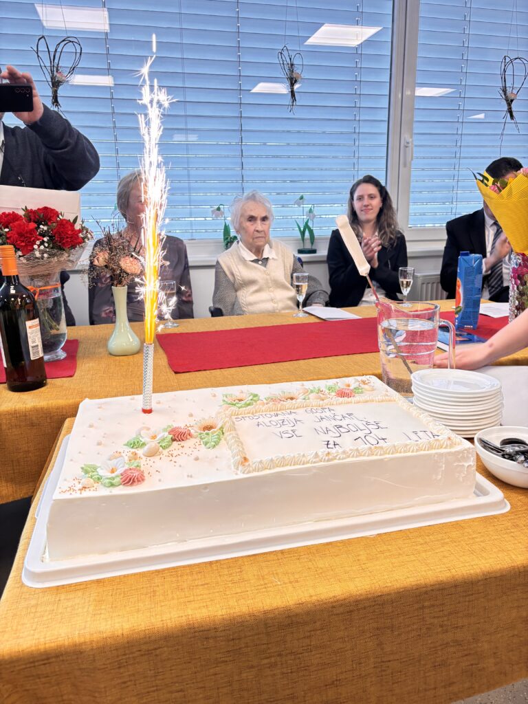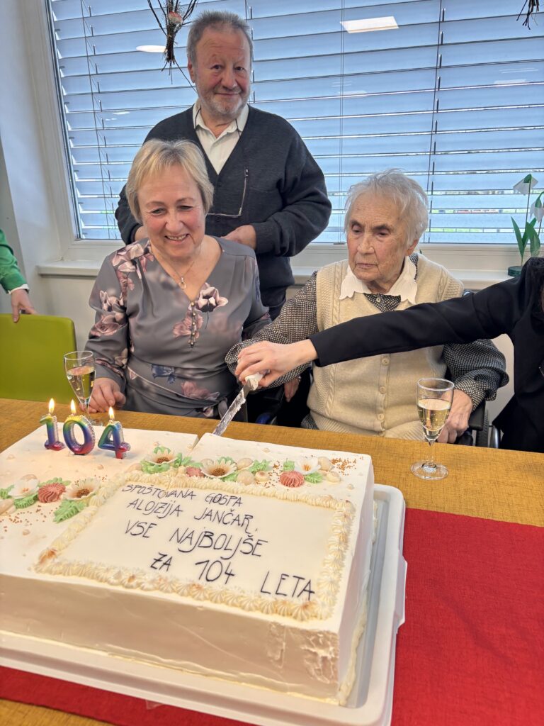 V ponedeljek, 30. marca 2026 smo stanovalci in zaposleni praznovali 104. rojstni dan naše stanovalke. Ob tej priložnosti smo nazdravili njenemu častitljivemu jubileju.
