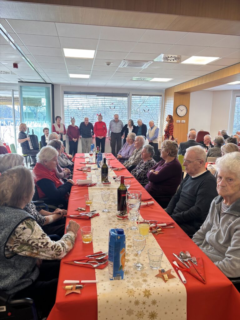 V torek, 16. 12. 2025, smo s stanovalci doživeli prijetno slavnostno kosilo, ki je potekalo v toplem in veselem vzdušju. Odlična hrana in lep kulturni program sta poskrbela za nepozaben dopoldan, ki smo ga zaključili še s plesom in dobro voljo ob čudovitih melodijah ansambla Viže.